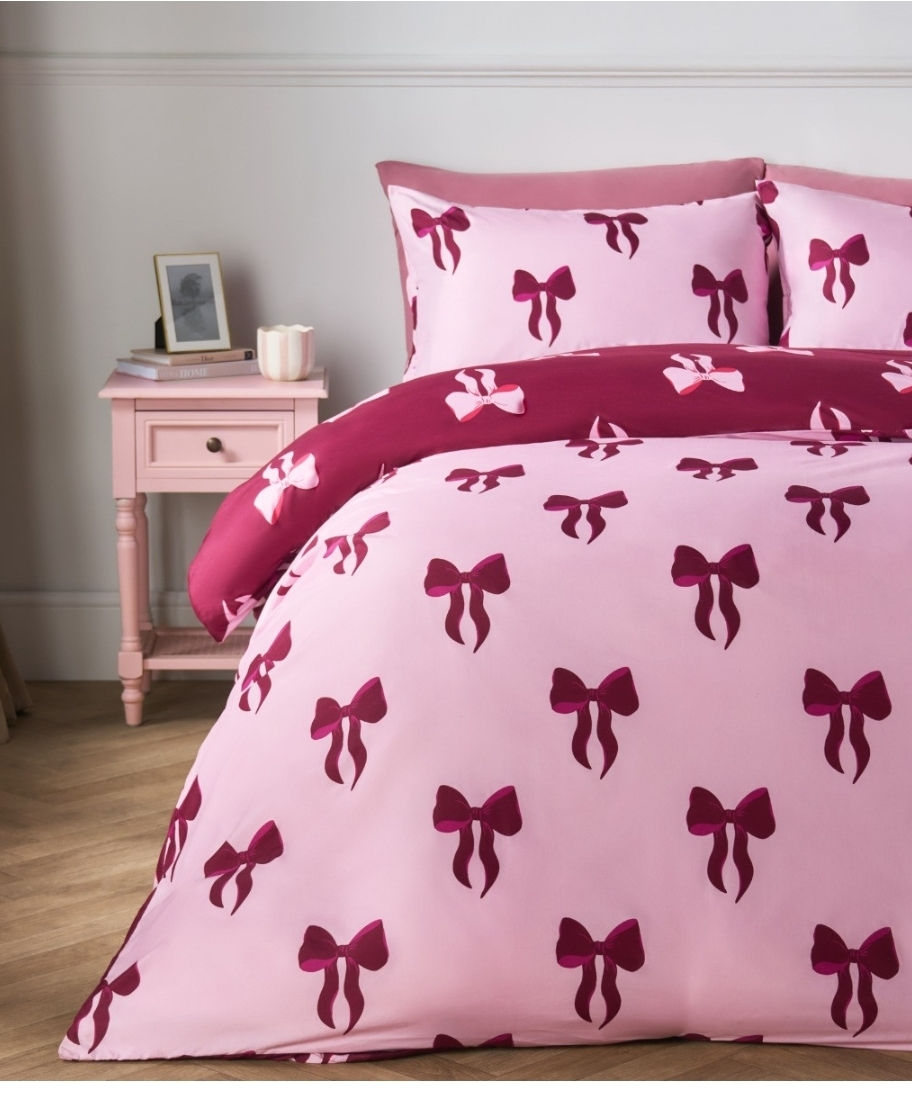 Combining style, comfort, the Bow Print Reversible Duvet Cover Set is the ideal choice for adding a touch of sophistication and softness to your bedroom décor.